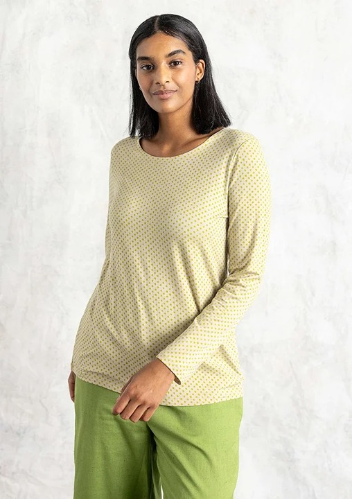 Simple style with a round neckline and long sleeves. Available printed with “Tina” dots and solid-colored.